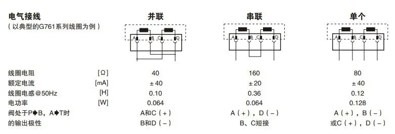 伺服阀有两个线圈(分别为AB和CD),所以可根据需要,在配套插头端将力矩马达的两个线圈外接为串联、并联或单线圈中的任何一种工作形式。