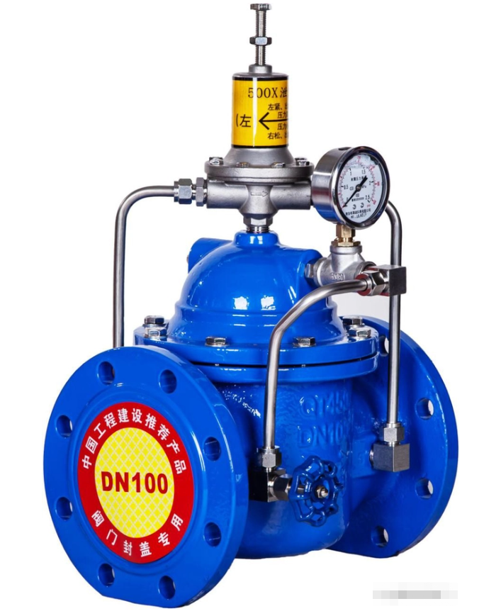 3、水用泄压/持压阀(500X-16):当给水管路系统中的压力超过设定压力时,阀门自动开启泄压,保护管线。