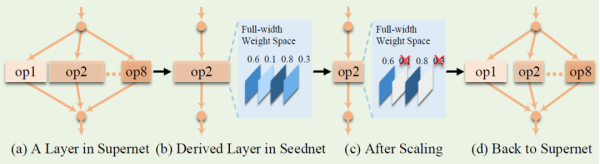 近日,中国科学院自动化研究所智能感知与计算研究中心团队从算子、深度和宽度三个自由度重新思考当前主流的可微分网络架构搜索算法,通过实验分析与验证,提出一种新的网络架构自动搜索方法,可稳定高效地从庞大的架构空间中搜索到高准确性的网络架构,同时严格满足时延约束。该方法能有效缓解可微分搜索中算子崩溃、架构冗余、无法满足精准资源约束的问题,使用单张Titan RTX GPU的情况下,在ImageNet上用1.8天搜索到76.9% top-1准确性的网络架构。