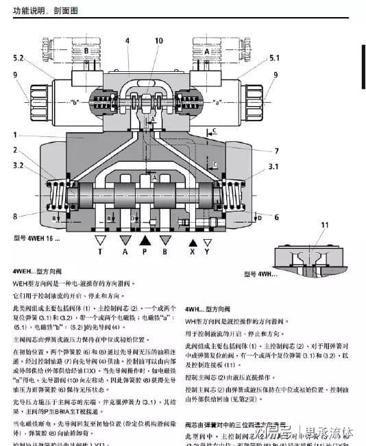 先导油通过通道T流进罐内进行内回油。底板油口X、Y处于封闭状态。