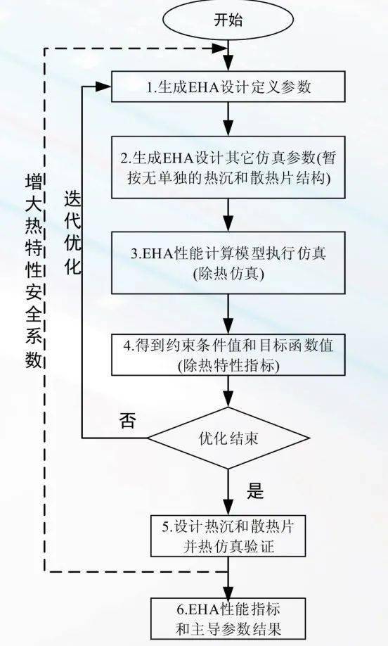 一种EHA系统级多学科多目标优化设计方法如图4所示,建立不包含和包含热特性的两套多学科模型,分别用于迭代优化设计和单独的热设计。内层采用智能优化算法如遗传算法,需要执行的模型仿真次数较多;但由于去除了热特性仿真,所以消耗的仿真时间是可承受的。外层主要用于进行后续热设计,对于可能出现的热特性要求无法满足的情形,采用增大安全系数的方法进行少数迭代就可最终满足要求,这样既可保证足够优化,又不至于仿真计算负担过重无法承受。