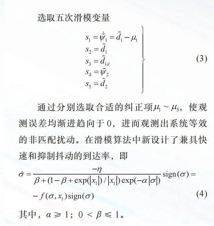 SMC是EHA最为常用的鲁棒控制算法,其本质是一种非线性的不连续控制,将系统从不同的状态引向预先设定的滑模面,而最终趋于有界稳定。但这种不连续性会产生抖动,造成能量损失和机械损耗,抑制滑模抖振的方法,至今仍是研究热点。