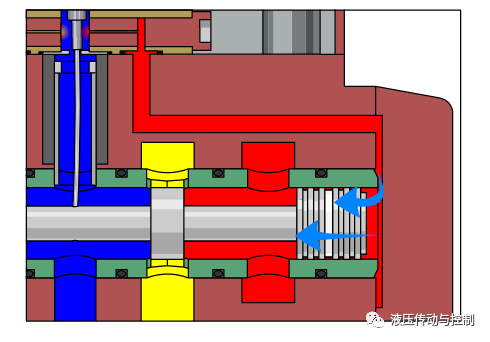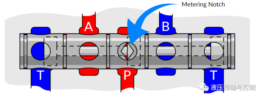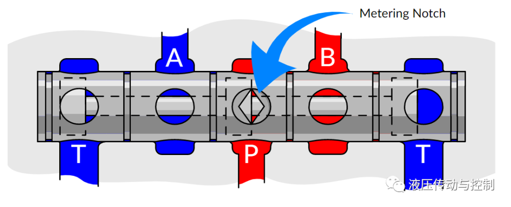 当阀芯移动时,会产生从供应端口到返回端口的流动路径。