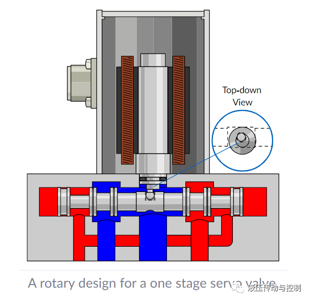 在一级伺服阀中,液压阀芯由集成电子元件直接控制。