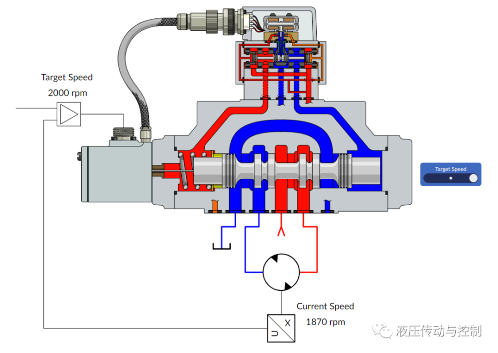 尝试下面的演示示例:改变目标速度,伺服阀快速响应。