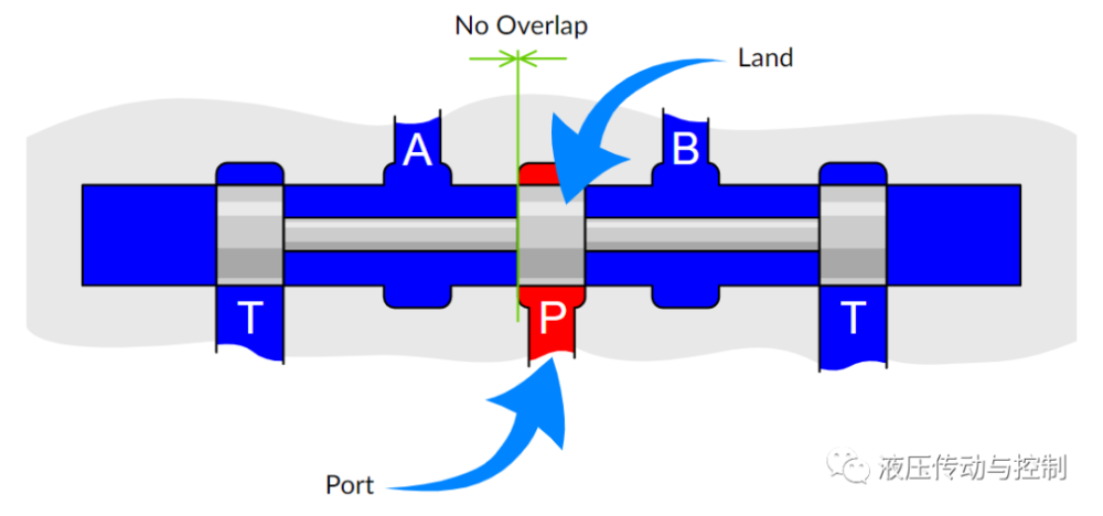 伺服阀通常使用零研磨(临界)中心阀芯。这意味着阀口和平台之间几乎没有重叠。