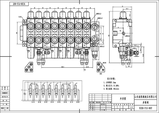 YCBD系列多路换向阀是由单向阀、安全阀、进油体、回油体和多个换向阀片组合而成的组合阀,以手动换向阀为主,它具有结构紧凑、工作压力高、性能优异、工作可靠等特点。油路采用并联油路,有多种滑阀机能供系统需要,阀杆复位方式采用手动换向弹簧自动复位或钢珠定位,阀片内部设置单向阀,以防止油液倒流,进油阀片带有溢流阀,以控制整个系统压力。根据用户需要,换向阀片两端可装有过载阀以满足不同执行机构负载需要,该阀广泛用于挖机、叉车、环保车等工程机械的液压系统。