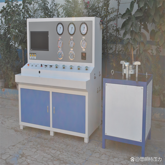 8. 控制台在不锈钢操作面板上设有八个指针式压力表双重显示压力,压力表分为四档量程,1.6MPa、4MPa、16MPa、60MPa,压力表精度0.4级。操作面板分别安装高低压气源压力表,操作面板设有