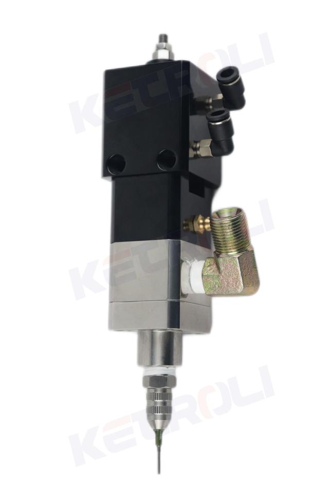 在点胶量的调节方面,只能通过阀体上方的行程调节旋钮控制,选择好合适大小的针头,就可以实现精准点胶。
