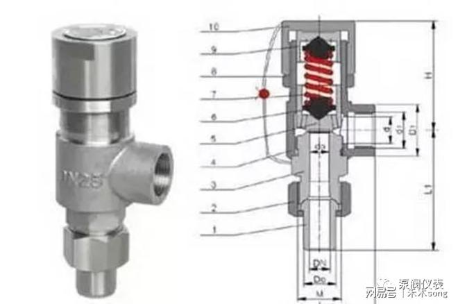 弹簧式安全阀是利用压缩弹簧的力来平衡作用在阀瓣上的力。螺旋圈形弹簧的压缩量可以通过转动它上面的调整螺母来调节,利用这种结构就可以根据需要校正安全阀的开启(整定)压力。