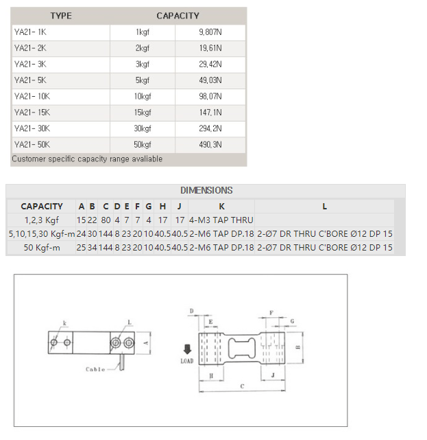 韩国SETech系列称重传感器,SETech YA-21-(1kg~50kg)称重传感器。