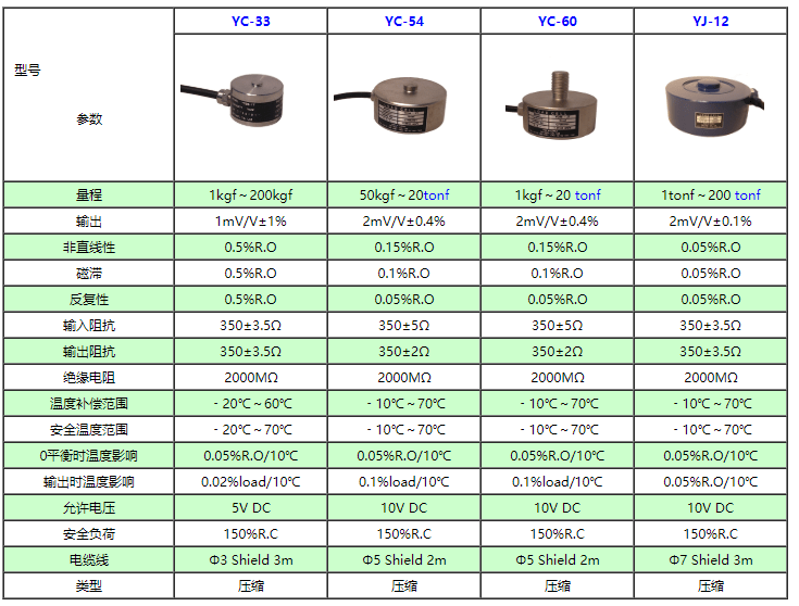 输出1.5mv/v±1%安全温度范围-/20℃~50℃