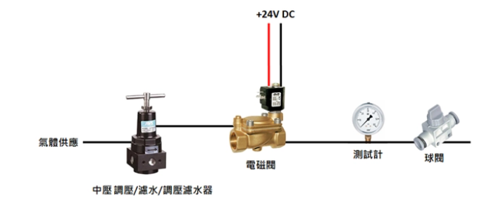 设置中压调压/滤水/调压滤水器中所需的压力,并将中压调压/滤水/调压滤水器出口连接到电磁阀