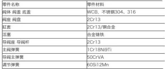 主阀主要由阀座、阀阀盘、活塞、缸套、弹簧等零件组成。导阀主要由阀座、阀瓣、膜片、弹簧、调节弹簧等零件组成。通过调节调节弹簧压力设定出口压力,利用膜片传感出口压力变化,通过导阀启闭驱动活塞调节主阀节流部位过流面积的大小,实现减压稳压功能。进口高温蒸汽减压阀主要用于高温蒸汽管路,起到减压稳压作用。