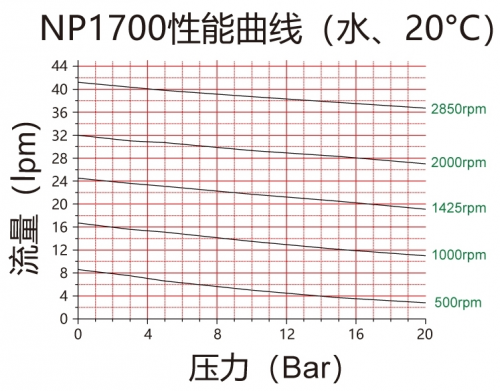 制造精良的微型磁力齿轮泵的一般可以在3~4000rpm转速范围内工作,通过查找每个型号的流量-压力-转速曲线,就可以方便的进行选型(lpm是升/分钟,斜线代表压差)