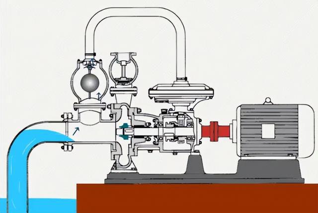 自吸泵的型号不同结构也不相同,不过大部分的自吸泵是由泵体、叶轮、泵轴、轴承、密封环、电机、底座等组成的。自吸泵的工作原理是在启动自吸泵前,可以先在泵壳中灌满水又或者是泵壳中本身有存水。在启动后叶轮作高速运转使叶轮槽道里的水流向涡壳,这时入口有真空形成,会使进水逆止阀打开,吸入管中的空气会进入泵中,并且会经过叶轮槽道到达外面。