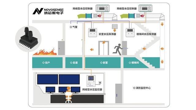 此外,消防余压系统也是利用微差压传感器来控制正压送风系统以确保消防疏散通道的安全,避免火灾时有毒气体流入逃生通道。