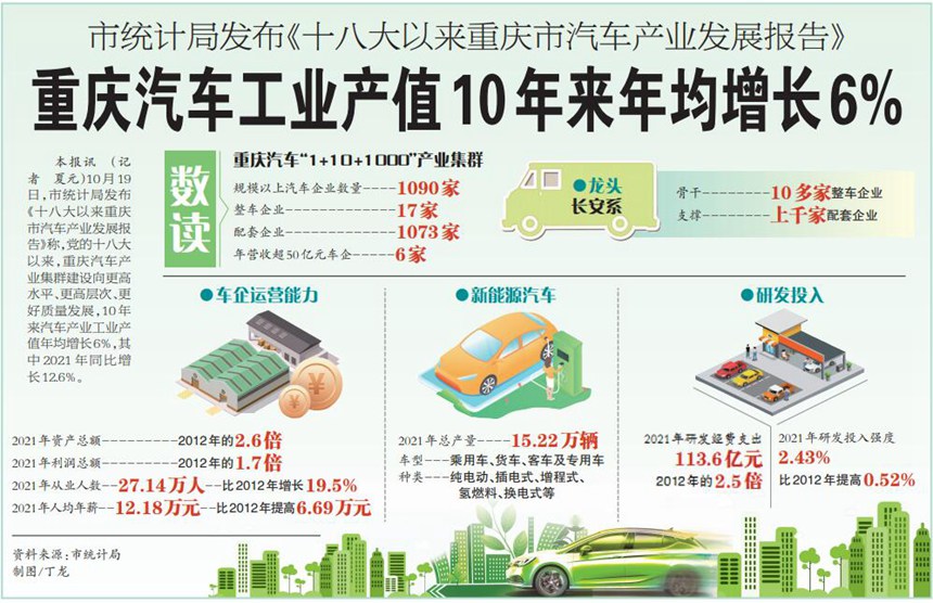 重庆市经济信息委副主任涂兴永20日在当地举行的新闻发布会上透露,近十年来,该市工业结构已由汽车、电子双轮驱动,向汽车、电子、装备、材料...重庆汽车工业产值10年来年均增长6%